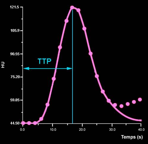 Courbe de réhaussement du contraste tissulaire en fonction du temps